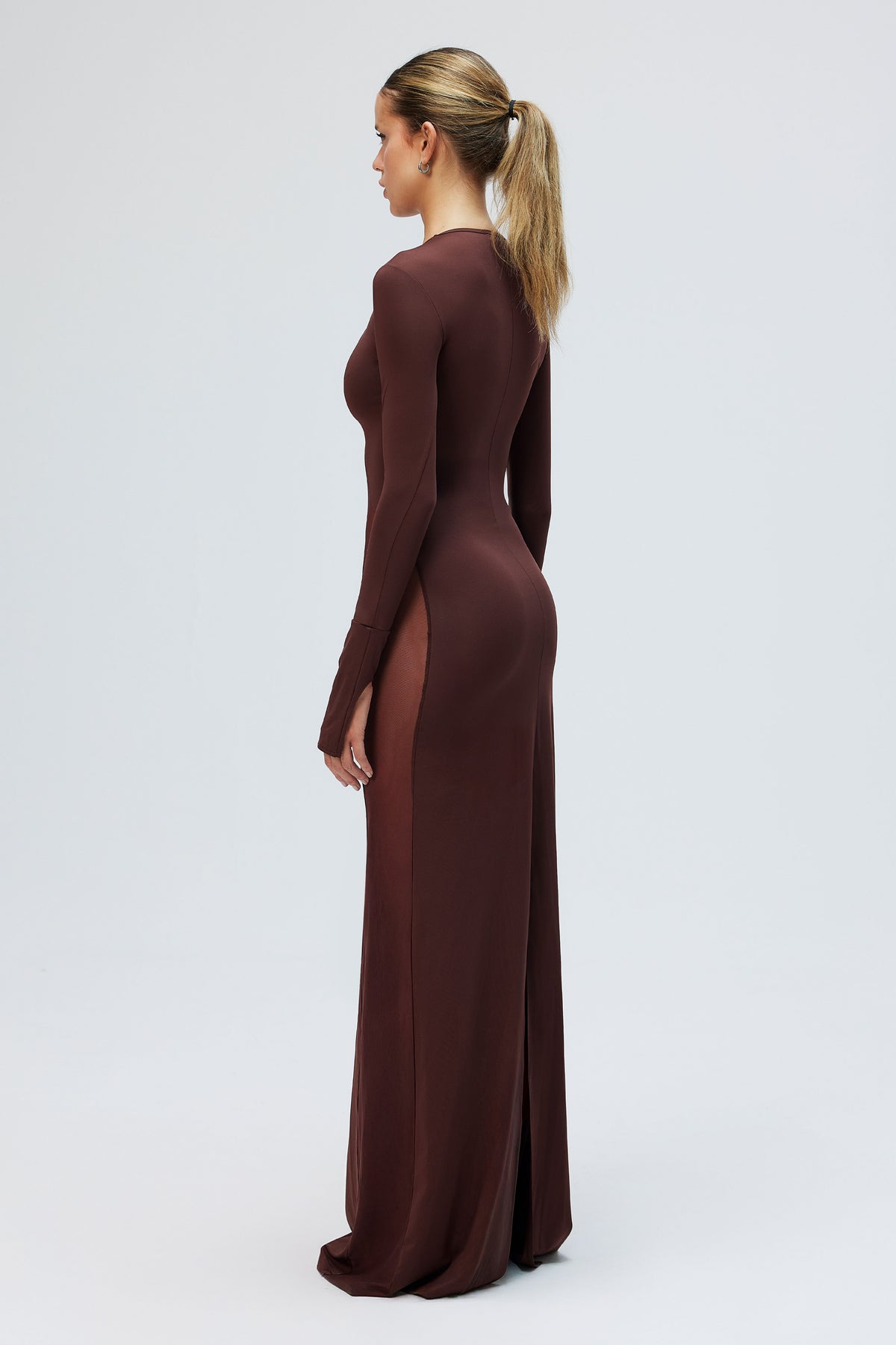 Isadora's height is 5'10", bust 31.8", waist 24.8", hips 35.8", and wearing the XS size.